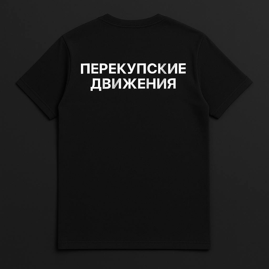 Базовая чёрная футболка проекта Перекупские движения — для тех, кто живёт машинами. Свободный крой, плотный хлопок и логотип, который знают все, кто «в теме». Удобна и в гараже, и в городе. Материал: 100% хлопок, плотность 200 г/м². Печать: термоперенос высокого качества, не выгорает и не трескается.