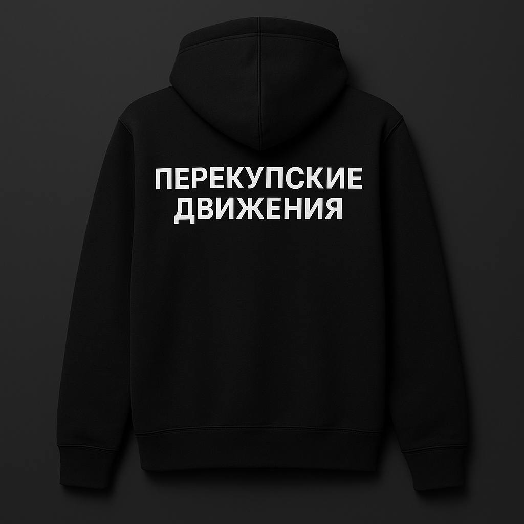 Чёрное худи Перекупские движения — комфорт, стиль и гаражная атмосфера в одном. Мягкий флис, удобный крой и логотип, который говорит сам за себя. Для будней, дороги и съёмок нового проекта. Материал: хлопок 80%, полиэстер 20%. Печать: шелкография, устойчива к стирке